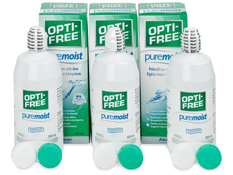OPTI-FREE PureMoist - víceúčelový roztok vhodný k dezinfekci, čištění, oplachování, zvlhčování a uchovávání silikon-hydrogelových a měkkých kontaktních čoček.Zvlhčující základ HydraGlyde